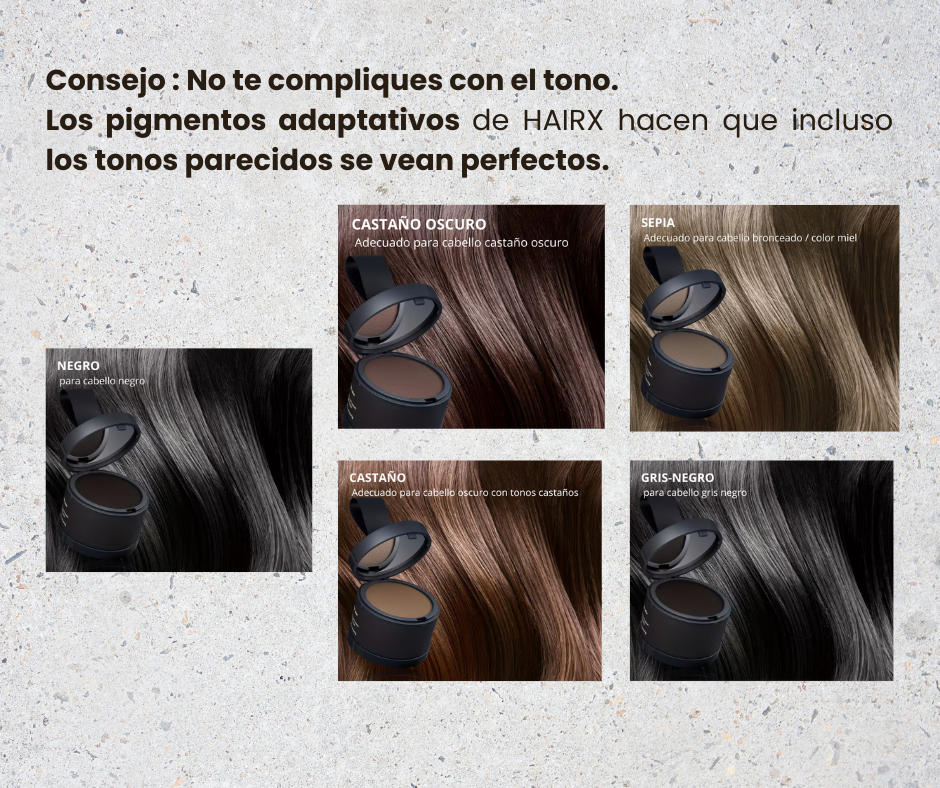 Tenía zonas claras en la coronilla y este polvo camuflante las tapa en segundos. No deja marcas, no mancha y dura todo el día. El acabado es tan real que nadie se da cuenta.